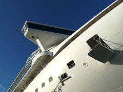 4時頃には船室に戻り、潮風に当たった体をシャワーを浴びて洗い流す。ディナーはいつものバターンで7時過ぎには 部屋に戻り休息し、その後、パソコンに向かい日記を記入してから床に入り、今日の一日は無事終了。今日のシアター は中止。理由は英語がわからない者には辛いトークショーなのでバス。