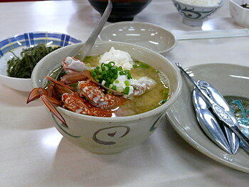お父ちゃんはワタリガニの「かに汁定食」 沖縄県の県魚「たかさご」の唐揚げ
