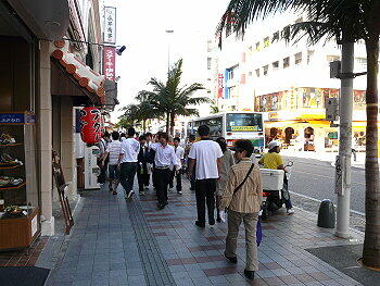 本船は5時前には那覇港に到着。やっと大揺れの状態から静かな岸壁へ接岸。検疫をうける前にコーヒーを飲んでか ら検疫を受け下船時間までの時間を部屋で待機する。7時半頃下船し、シャトルバスで国際通りへ向かう。これからしば らくは日本食にはありつけないので、公設市場の二階にある食堂で二度目の朝食をとる。二日振りの日本のご飯であっ た。食事後は国際通りをブラブラ散歩しながら11時過ぎには本船に戻る。ディナーに備えて昼食はパス。