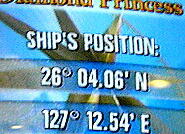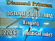 明日はまた時間を遅らせる。今回のコースは西に行ったり東に行ったりで時計の修正が大変。海上は相変わらず荒れ 模様であるが、昨日ほどの揺れはない。那覇・基隆間は300マイル以上もあるので航海速力も値一杯の21ノット以上を 出して快走中。それにしても今回のクルーズはよく揺れる船旅になりそうだ。
