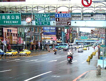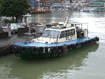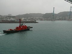 出航の時はこのパイロット船が活躍 この道路が台北へ通じる高速道路の入り口