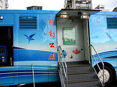 ズラリと並んだ観光バス ここの店屋でおみやげを買いました 立派な移動式トイレ