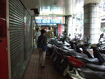 歩道の半分はバイクで埋め尽くされています そうでないところは商品の陳列でとても歩きにくい