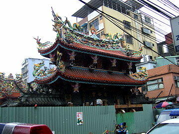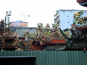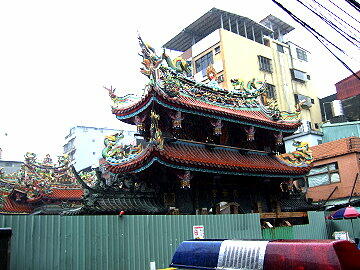 警察署前に基隆の名所である景安宮がありましたが、あいにく工事中で 内部の見学はできませんでした