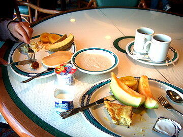 6時からはいつものディナー。普段は食べたこともないのに、そろそろフルコースのディナーも飽きてきた感じである。 その後、おかあちゃんはショーを見に行くということで出かけたが、やはり今回もトークショーということで間もなく部屋に 戻ってきた。