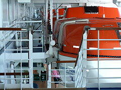 8階にズラリと並ぶライフボート 海に落下した人を見つけたら プロムナードデッキを2回半回ると