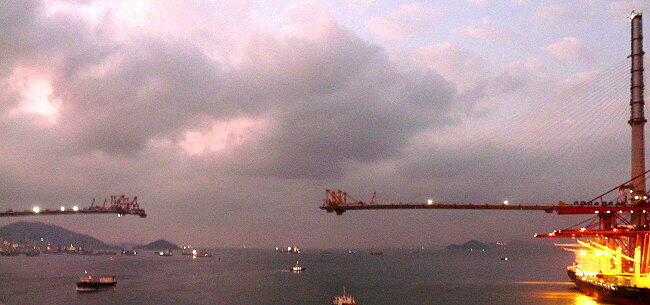 Kwai Chungコンテナー港入り口に新しく橋を架ける工事が進行中。橋の高さ75m、2本の主塔高さは290mに 達する。2008年完成予定であるが、見たところ今年中の完成は無理。長さ1,600mのStonecutters(石工) 橋は香港の貿易活動の重要な構成物になると思われる。