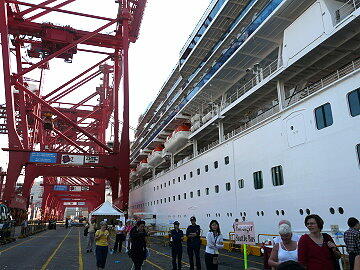 本船は香港に1泊するが、夕方にはジャンクベイへ移動して沖止めとなる。従って夕方のシャトルバスに乗り遅れた ら、香港島へ渡り、シャトルフェリーで本船に戻らなければならない。中には香港の一流ホテルに宿泊する船客もいるか も知れないが、我々貧乏人は本船で宿泊するので12時過ぎには本船へ戻った。