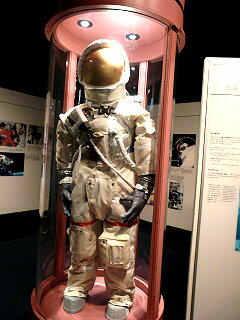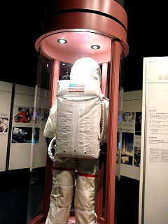 博物館は結構、面白いものが展示されており、体験型博物館という印象である。たとえば月面の6分の1の引力体験 や無重力の体験など面白い装置が設置されていた。これらの機材はいずれもNASAから提供されたものと思われる。な かでもNASA提供の宇宙服が展示されていたのには驚かせられた。