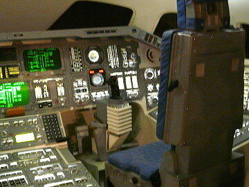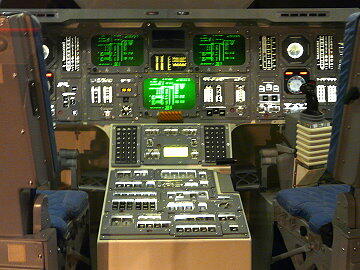 スペースシャトルのコクピット。天井には数え切れない程のスイッチ板がありました。