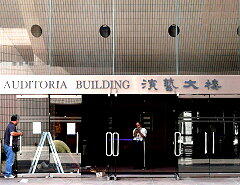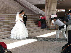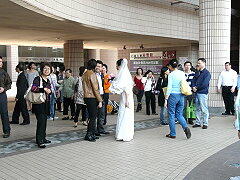 コンテナヤードの本船からオーシャンターミナルまでは結構な距離があって、快速(高速)道路を使用しなければならな いような距離であった。もとタクシーに乗ったら相当取られるかも知れない。我々夫婦はシャトルバスから降りて、徒歩で 九龍半島の南端にある香港太空館(宇宙博物館)へ向かう。入場料はシニア料金でたったの5ドル(70円)であった。 あの一角は公共的な建物が多い。今日は日が良いのか、歩いている途中、二組の新郎新婦に出くわした。当地では外 で記念写真を撮るらしい。
