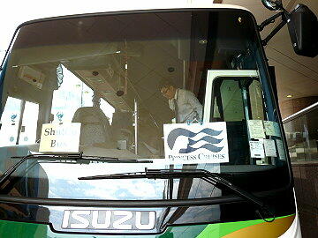 約1時間半程度見学した後、シャトルバスの乗り場へ向かう。途中、フェリー船着き場に立ち寄り、露天を冷やかしなが ら13時過ぎには本船に戻る。