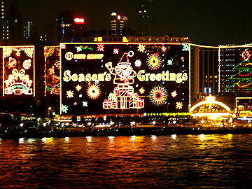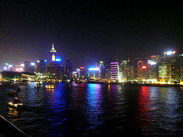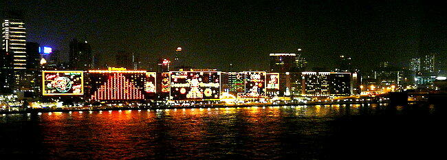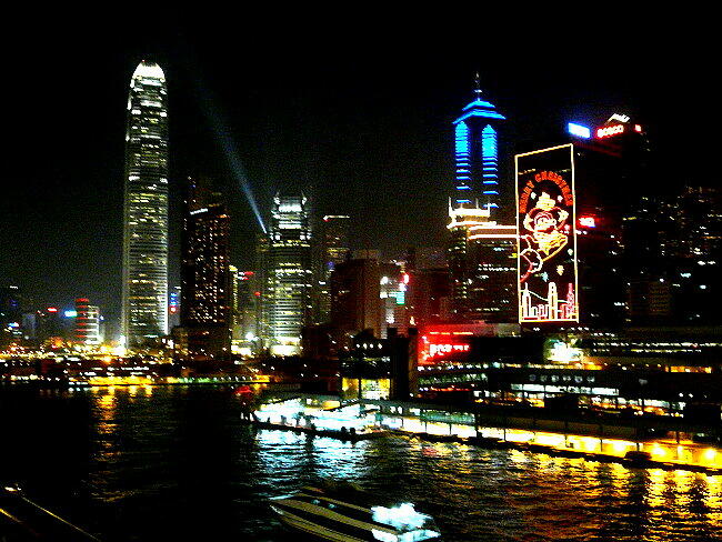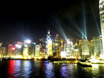 香港の夜景は世界一いうけれど今回は海上から見ただけなので、あまり素晴らしいとは思えなかった。やはりビクトリ ア・ピークへ登らないとその光景は無理なのかも知れない。二泊すれば見に行くことも出来のだが、残念ながら本船は移 動しながら、ライトショーを見物したため見ることが出なかった。
