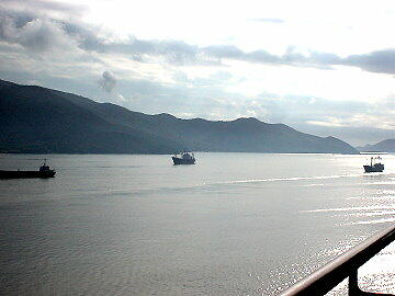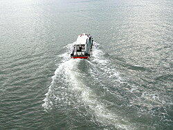 パイロット船が近づいてきます とても小さな港です