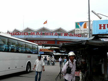 シャトルパスはニャチャンのダム市場までの運行。「ダム市場」といっても、貯水のためのダムにあるわけではありま せん。ここは観光の目玉にもなっているので、市場前には大型観光バスが何台も並んで大変な混雑ぶりでした。