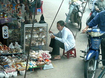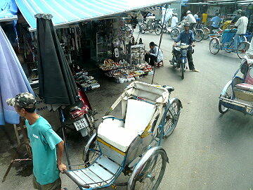 小一時間程ダム広場で商店街を冷やかして歩く。一番困ったのは子供の絵はがき売りとシクロの勧誘である。まとわ りつかれて買い物どころではなかった。