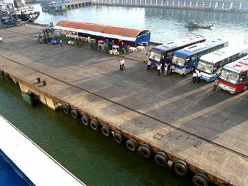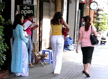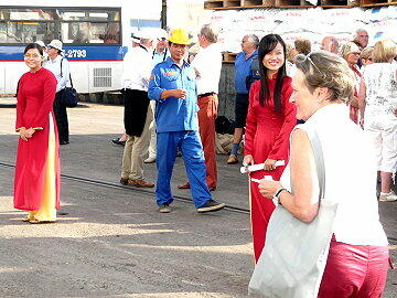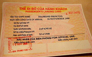 上陸カード(ビザの代わり?)が必携です。 下船するとアオザイの女性がお出迎え。