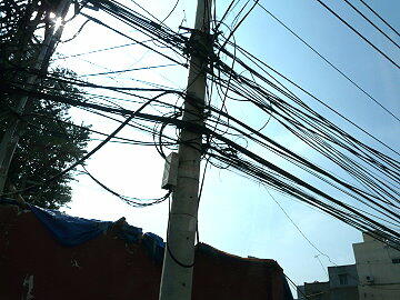 突然現れた張りぼての巨大仏像 電話線が蜘蛛の巣状になっています