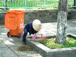 日本とは毛色の変わったトランス 植木の手入れをしています このような姿を見ると戦争は悲惨です
