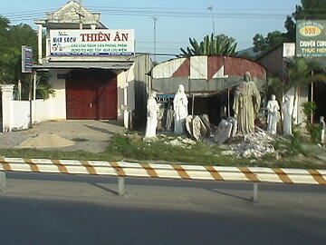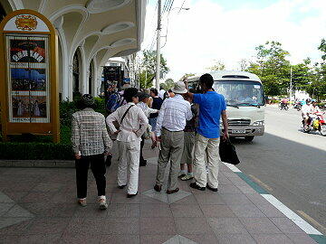 シャトルバスはホーチミン市とは逆に位置する40q離れたブンタウ市へ向かう。これに乗った人の話ではバスは冷房 もなく窓を開けっ放しのひどいバスで、ガタガタ道路を走って大変な目にあったらしい。おまけに街全体が異様な臭いに 包まれていて、早々に帰ってきたという。