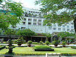 我々グループはオプショナルツアーでプーミーから70qほど離れたホーチミン市へ向かう。途中の道路は最悪で、 これでも高速道路かと思うくらいガタガタの道路であった。いまだに公共施設のインフラが進んでいないように見受けら れた。それでも途中2カ所ほど料金所があったので、あれでも有料道路ということらしい。
