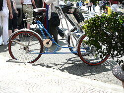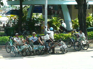 ドンコイ通りの突き当たりでたむろするシクロ。この奥にサイゴン川が流れている。
