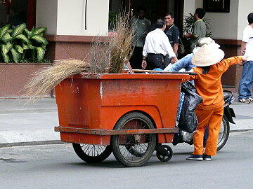 1日中売り歩いて一体どのくらい売り上げがあるのかな。 天秤棒をかつぐ女性の姿はよく見かけました。