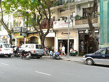 ドンコイ通り。こぢんまりとした瀟洒な商店が並んでいる。