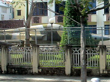 バスで移動中、戦闘機と戦車を見つけました  ホーチミンの市内観光を無事終了。蒸し暑い日でした。
