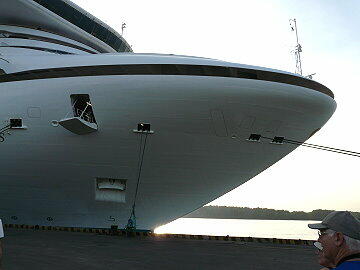 本船は午後に船首の向きを変えたらしく接岸時と向きが変わっていた。定刻の5時30分に今回のクルーズの最南端 のシンガポールへ向かう。