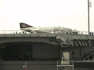 F4がアレスティング・ギアを下げて制動用ワイヤーに引っかけています