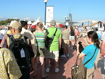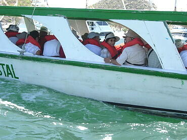 この岩はアザラシが一杯 ここカリフォルニア湾は鯨の生まれ故郷。航行中「鯨がいるぞ!」と叫んでいる人がいたが、 その指の先を目をこらしてよく見たのだが、それらしきものを発見できなかった