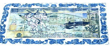 サンノセの教会。神父が原住民に引きずられているタイル絵があります。