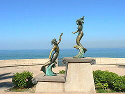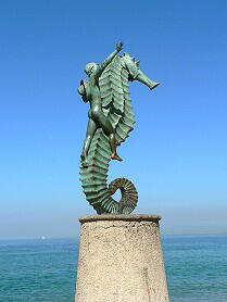 この街の紋章になっているタツノオトシゴ 海岸沿いにはいろいろなモニュメントがあります