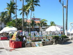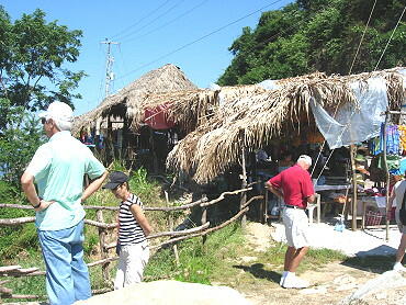 掘っ立て小屋のような土産物屋さん 港から60q位離れたところにあるリゾート地