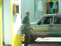 所々に銃を持った兵隊が・・・・ これでもまだ走るのかな 路面電車風バス