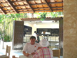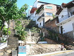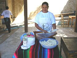ここの休憩所でテキーラをごちそうになりました。名物料理を目の前で調理します。 坂の多い町です