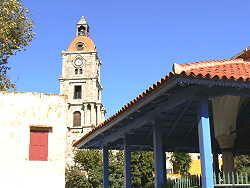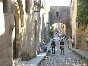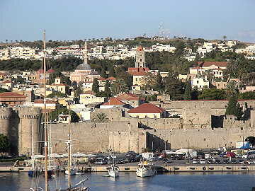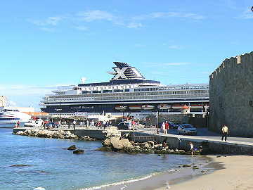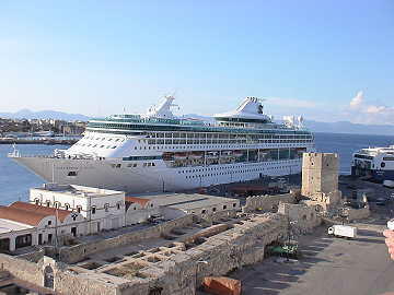 今日のロードス島の観光はOPツアーをやめて、個人で旧市街を散策した。旧市街は港から歩いて10分位のところに あり、本船からも城壁に囲まれた旧市街を一望出来る。この旧市街は14世紀に造られたもので約4qの城壁で囲まれ た中にあり、見所としては騎士の宮殿・スレイマンモスク・博物館などがある。