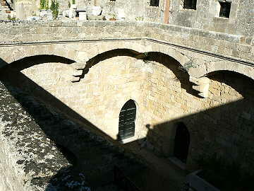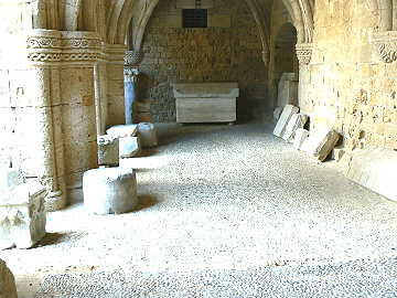 次いで長いダラダラ坂の両脇にある十字軍の騎士の館を見物する。この遺跡みたいな建物に現在も人が住んでいた り、事務所になっているのにはビックリ。この坂を上り詰めると騎士団長の宮殿があり、こちらの入場料は12ユーロ (ボッタクリ)である。両者を比較すると博物館の方に軍配を上げたい。