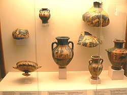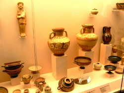 最初の見学地は考古博物館である。ギリシャ時代の遺物がたくさん見ることができた。今まで教科書でしか見たこと かない遺跡・出土品を目の当たりで見ると感動ものである。これで入場料3ユーロとは安い!