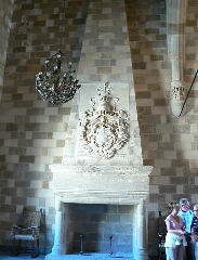 宮殿の中庭 大きな暖炉 甲冑を付けた騎士が立っています