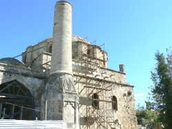 このほかスレイマンモスクや廃墟みたいなムスターファモスクやトルコ浴場などを見て回った。約3時間あまりを狭 い城壁の中をあちこちブラブラ散策して本船へ帰る。乗船の際、セキュリティチェックで久しぶりにビーを鳴らしてしまっ た。原因はタバコを2個所持してためとわかる。タバコの銀紙はよく機械に反応するので注意はしていたのだが・・・・。