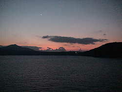 今日は予想に反して晴れてくれたので観光には好都合で助かった。街では上半身裸で歩いている人もいたのにはビックリ。 出航直後のきれいな夕日