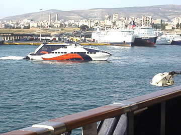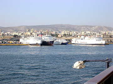 朝6時にはパイロットを拾い、定刻7時にピレウスへ入港した。この港には多数のフェリーや外航船が多数停泊してお り、活況を呈している。アテネへ6qという近さを考えるとアテネの港と言える。