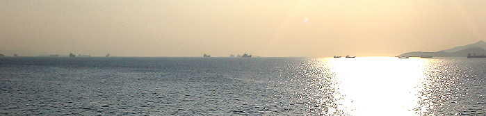 港外には多数の船舶が停泊している。ザッと数えただけでも20パイ以上停泊していた