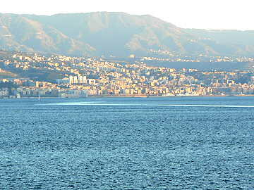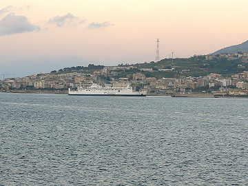 夕方近くシシリー島とイタリア本島のメッシーナ海峡を通過する。 最短距離はたった3qしかない。