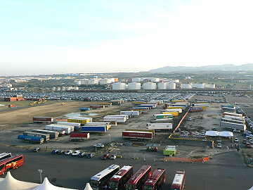 北海道でいうと石狩湾新港というところかな テント張りのターミナル。ここで鞄を壊されました。
