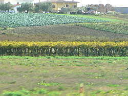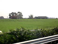 空港までのどかな田園風景が続きます バスの頭上をかすめて着陸