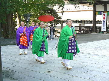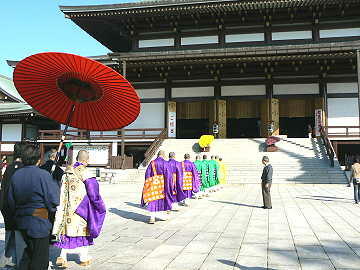 毎朝の御護摩ご祈祷へ向かうお坊さん達