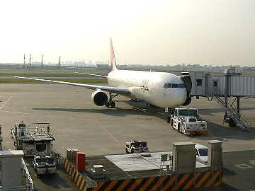 定刻11:25より20分前に成田に無事到着。奥まったB滑走路に着陸したため成田空港の全域を上空から見物でき た。おまけにタクシーも走るは走るはで成田空港内を隅から隅まで走り回ったという感じでようやく第一ターミナルに到 着。よく迷子にならないものだと感心した。